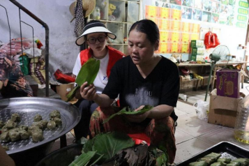 “抓团、摁平、置馅、拢合、揉圆、滚盆、叠叶、裹包、上笼”,制作桐叶糍粑的每一步都由纯手工制作完成,没有机器的流水式生产,在保持产品干净的同时也能最大程度保留其原始口感。据了解,沅水流域两岸多生长桐树,而制作糍粑的原材料桐叶就是从山上采摘下来的,即使近几年这种天然的桐树越来越少,但目前仍然没有找到可以替代桐树叶的材料,因为它有自己独特的桐香味,邓婆糍粑铺即使托人去山中寻觅,也会选用该树叶来制作糍粑。糍粑口感要好,内馅的调制也是一门学问。邓婆糍粑店目前坚持做好芝麻红糖馅,据悉,湘西地区多山地,少平原,气候也不允许种植甘蔗,因此制作糍粑内馅所使用的红糖大多都是从外地采购而来。
