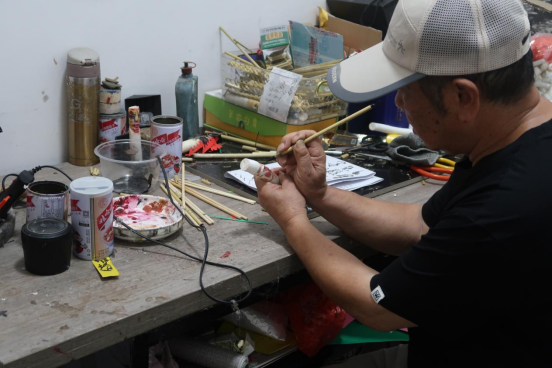 2018年,鳌山灯被列入州级非物质文化遗产保护名录,七十岁高龄的杨必熙便是这一非物质文化遗产的传承人。当前,他在泸溪县上开着一家工作室。“我不知道自己还能干几年,只希望我能将这门手艺传下去。现在的新东西太多了,年轻人都不爱看了。”说完这句话,杨必熙停顿了一会。他表示,现在收徒很难,没有人愿意来学习这个技术,自己的子女也都在外打工,这门手艺可能就要停在自己这一代了。