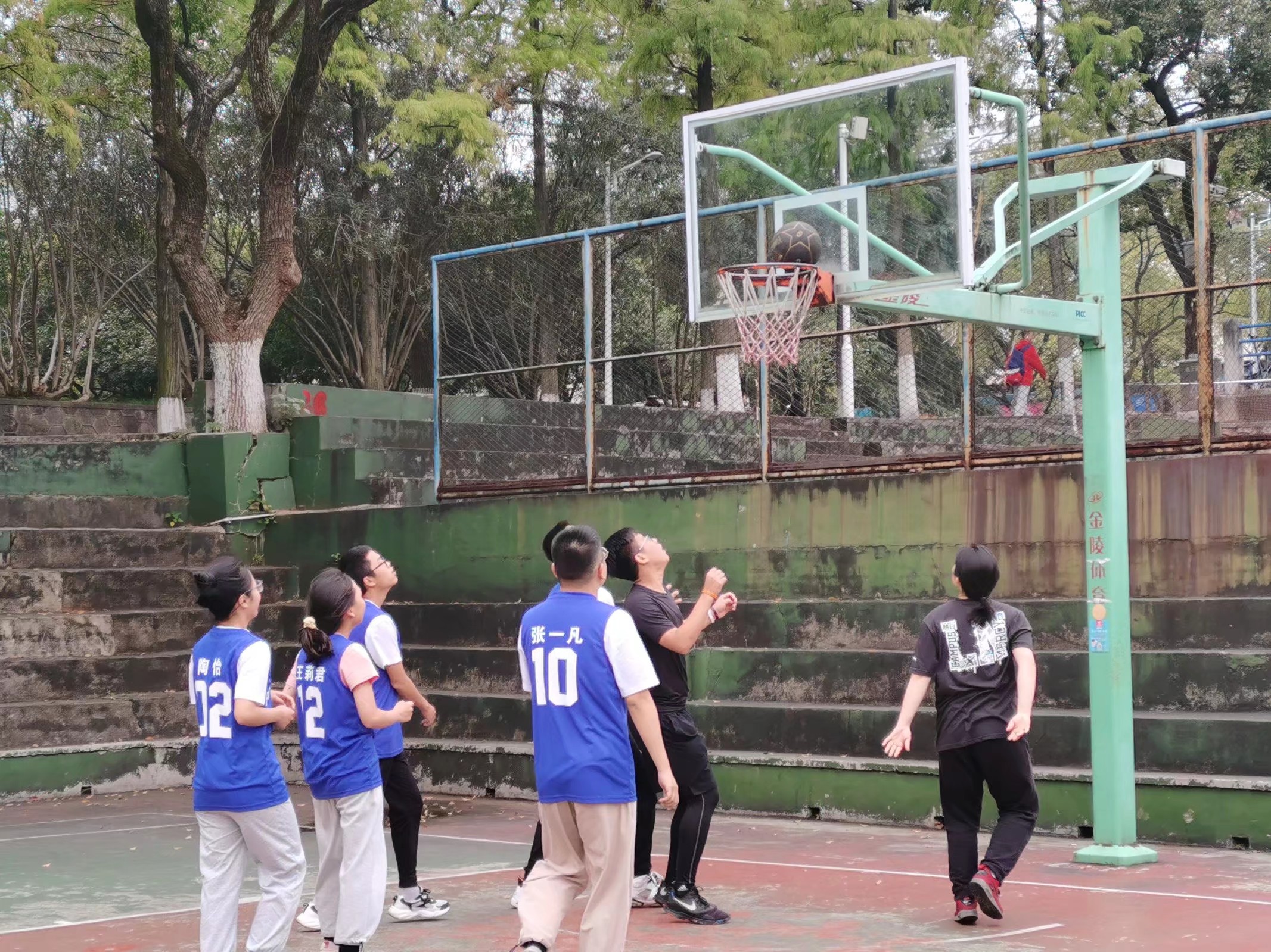 不知不觉,比赛已经到了最终回合,球场的气氛也愈发轻松欢乐。联队黄瑜亮选手灵活穿越球场,再次进球。秉持着“友谊第一,比赛第二”的理念,双方球员不争不抢,缓慢投球,中文三班王莉君选手拿到篮球,预备投篮,双方球员站在篮板下仰目注视,终于,篮球入框,王莉君选手拿下四分,本次比赛在阵阵欢笑声中结束。