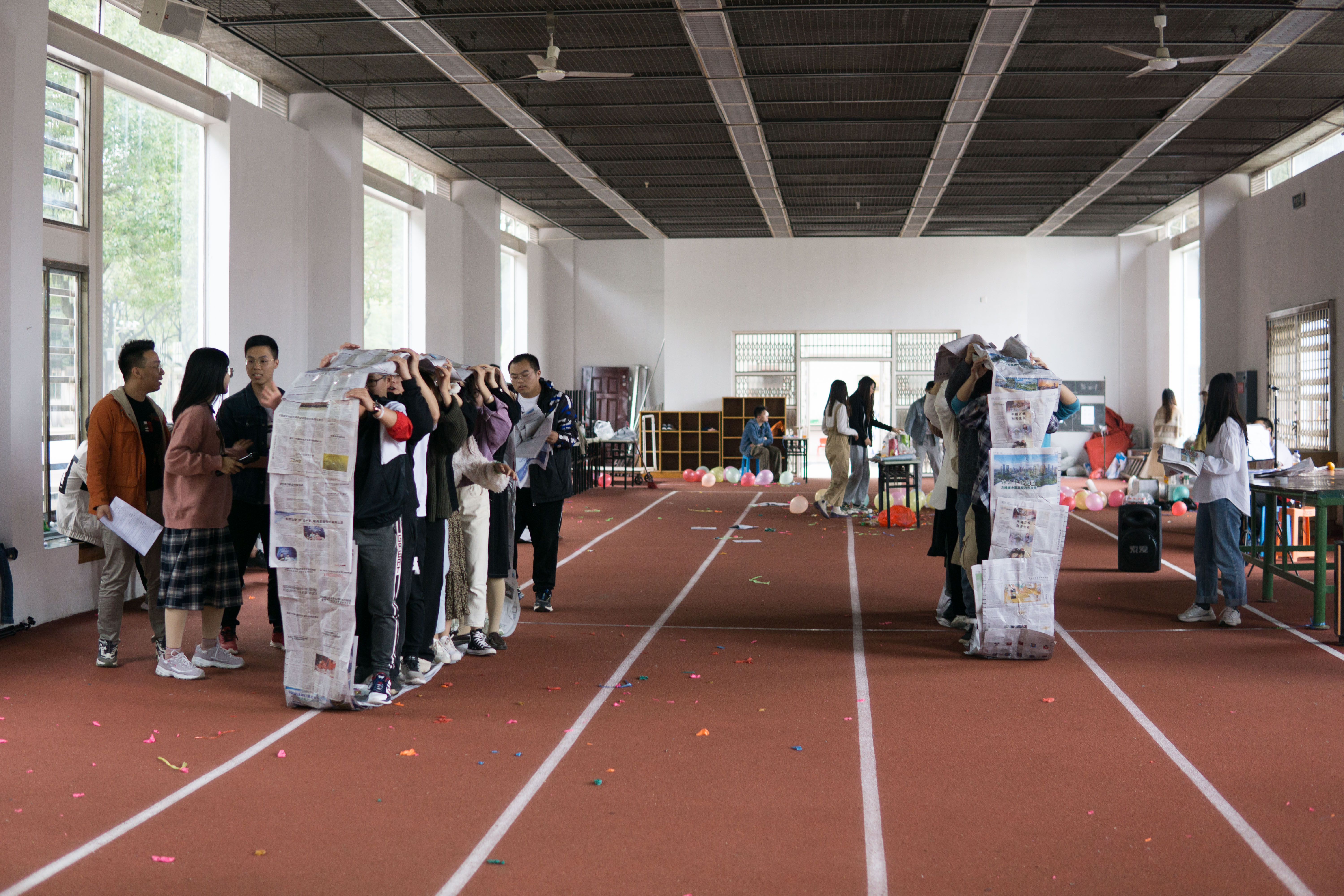 此次共有三个游戏,分为踩气球、无敌风火轮、心心相印(背夹球)。每一轮游戏结束,按照排名积分,积分最多的一队将成为游戏环节的冠军。踩气球,大家你追我赶,在保护自己脚腕上气球的同时不断进攻对方的气球;无敌风火轮,各队团结合作,齐心协力用报纸搭建的履带冲向终点;心心相印(背夹球),大家两两搭档用后背夹住气球步调一致进行折返跑,配合得十分默契。在大家的欢声笑语中,游戏环节成功落下帷幕。最后,由足球赛事直播