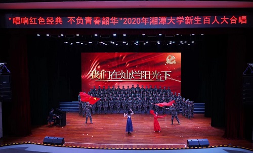 比赛正式开始前,刘建平副校长为大赛致辞,并倾情献唱《浏阳河》。伴着“邵峰高,湘水长”的悠扬歌声,2020年新生百人大合唱比赛正式拉开序幕。