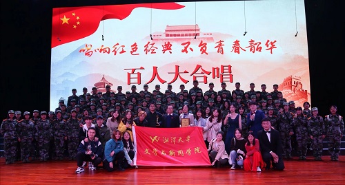 的新生们不仅得到了一次荡涤思想、触及灵魂的精神洗礼,而且进一步激发了爱党爱国情怀,更加坚定了不忘初心、牢记使命、砥砺前行的决心。正如现场观赛的李惠湘同学说:“百人大合唱比赛让我们学院新生们有了更加强烈的集体感和荣誉感,也让我们更加懂得了坚持,更加明白了自己作为新时代青年的历史使命和时代责任,我们会更加坚定地肩负使命一往无前!”