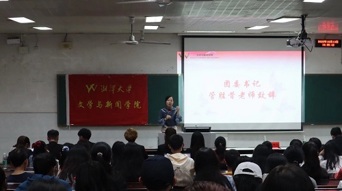 回望学生会近二十年来的光辉历程,周书记对文新院学生会取得的累累硕果倍感欣慰,并号召全体成员要敢想敢做,把学生会工作办的越来越好,对此他提出几点要求:一是注重培养四种意识,大局意识、创新意识、服务意识和效率意识;二是着重提升四种能力,组织策划能力、综合管理能力、协调沟通能力、规范执行能力;三是努力发挥三种作用,模范带着作用、参谋助手作用、桥梁纽带作用。