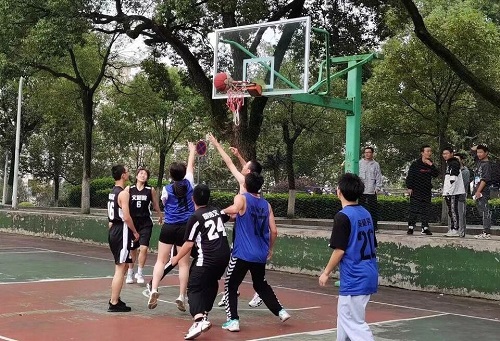 由于19级新闻联队比赛经验丰富,又有多名出色队友守阵,20级中文二班在比分上已有所逊色,19级新闻联队吴昊男不断进球得分,全场观众都为中文二班捏了一把汗。最后五分钟,双方你来我往,奋力抢球,最终19级新闻联队以93:81的成绩获得最终胜利。
