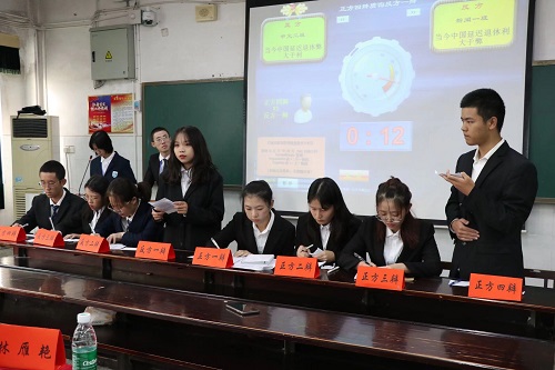 进入自由辩论环节后,双方更是尽显风采。场上辩手对于“经验先行还是创新先行”这一问题各抒己见。辩手们妙语连珠,争先发言,辩论过程中角度刁钻而不失道理,语调激昂又不失文气。在最后的总结陈词环节,反方四辩再次从养老体系和人力资源的利用两方面阐述本方观点,最后运用孙中山先生的名言作为总结,条理明晰,言之凿凿,略胜一筹。