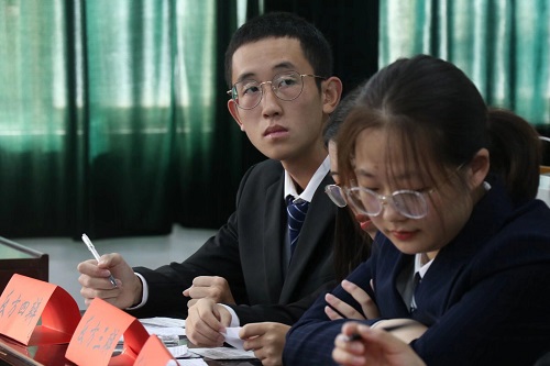 在比赛环节中,正方开篇立论,首先对“退休”这一名词的定义做出阐释,并从个人意愿和社会现实两方面阐释了延迟退休的弊端。反方则从现代社会老龄化愈加严重的现状出发,阐释了延迟退休对社会经济的有利影响。双方开局便针尖对麦芒,据理力争,充分展现了文新学子的文学底蕴和社会关怀,场上氛围逐渐火热。