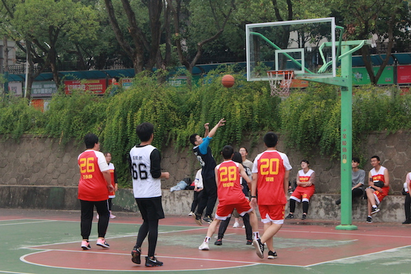 经过短暂休整,第二节比赛正式开始。18级新闻广电队队员们依旧斗志昂扬,19级新闻三班也丝毫没有为比分的差距而气馁。比赛开始,18级新闻广电队首先获得制球权,在队友的默契传球之下,球最终传到23号黄瑜亮手中。黄瑜亮不负众望,夺得两分。随后,19新闻三班得球,九号覃贝将球传给74号贺岱松,74号躲避了18级新闻广电队的堵截,将球传给77号黎瑞雏,77号一个跃起投球,夺得两分。本节比赛对战激烈,双方都找到节奏,最后以10:6结束,18级新闻广电队领先。