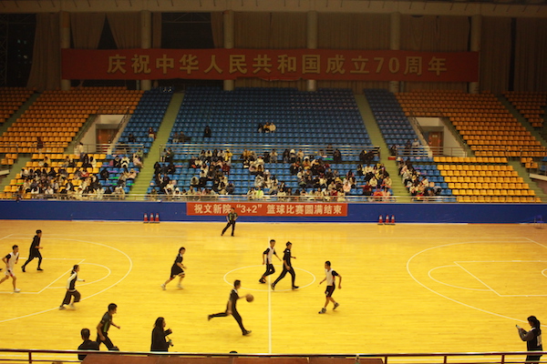 “迎新杯”3+2篮球赛在观众经久不息的掌声中落下帷幕。双方篮球队员们在球场上迸发竞争精神,尽显文新风采。最后,由足球赛事直播