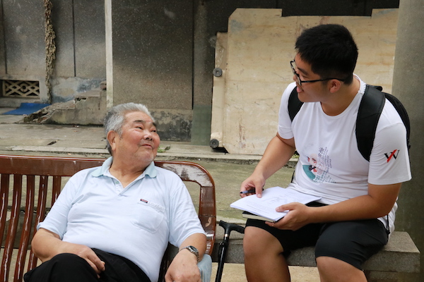 (图为调研团成员采访当地老人)