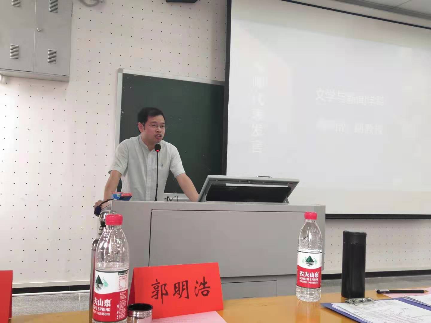 导师代表——郭明浩老师首先向刚刚踏入大学校园的新生表示欢迎,并以自己在研究生学习阶段的经验和教训,寄语同学们要“敬畏学问”、“笃实为学”、“志存高远”,希望同学们可以对学术抱有敬畏与尊崇,以坐穿冷板凳的坚韧精神和严谨笃实的朴素学风,在艰难困苦中砥砺奋进、持之以恒,最终学有所成,研有所得。