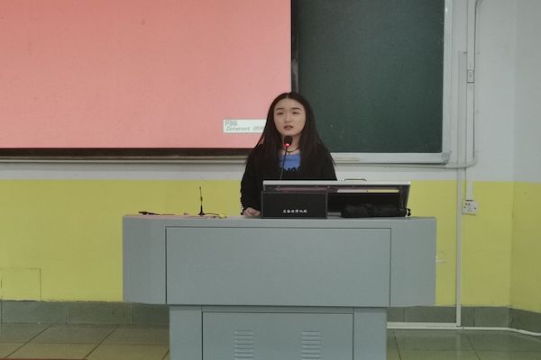 学生会主席罗舒晴同学发言。她引用“大学之道,在明明德,在亲民,在止于至善”,让同学们深刻认识到治国应先修身立命,因此大学生应兼顾学习和社会实践。学习是学生本职,在处理好学习的情况下也要积极参加课外活动。罗舒晴同学的讲话使在场的同学明确了大学生活的目标,也坚定了向党组织靠拢的信念。
