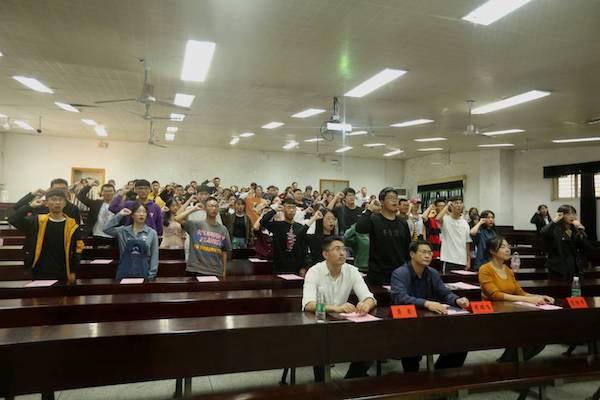 十九届学生会团委第一副书记刘雅俊带领宣誓后,院党委副书记周鹏飞做大会总结发言。周书记强调,一个团队的凝聚力、创新力和思想力是做一件事取得成功的基础和关键。周书记肯定了所有志愿者在志愿服务中的付出,并向大家提出三点要求:一是要将志愿服务活动与提升自身德行相结合,今后无论在哪个岗位,都要有替别人着想的爱心;二是要将志愿服务与提升专业能力相结合,把每一次活动当成提升能力的练兵平台;三是要进一步凝炼特色,打造一个个性鲜明的志愿服务平台。周老师以勉励作结,鼓励青年志愿者们扎根实践,积极投身社会服务活动,展现文新学子的风采。