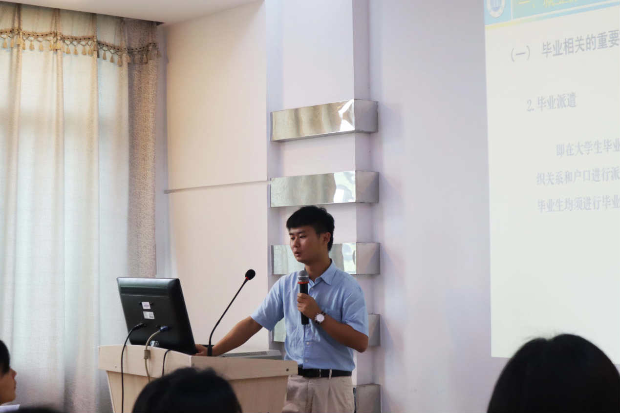 最后,林瑜老师针对毕业生诸多问题全面而又详细的进行解答。林瑜老师主要从三个方面来为大家解惑:1、人事档案的派遣;2、户口的迁移;3、学校离校系统的办理,这些都是毕业生们所面临的最急迫最想了解的问题。此外,林瑜老师还举了各种例子尽可能的让同学们了解到档案、报到证、三方协议等等文件的重要性,语言朴实而恳切真诚,同学们都在仔细倾听。