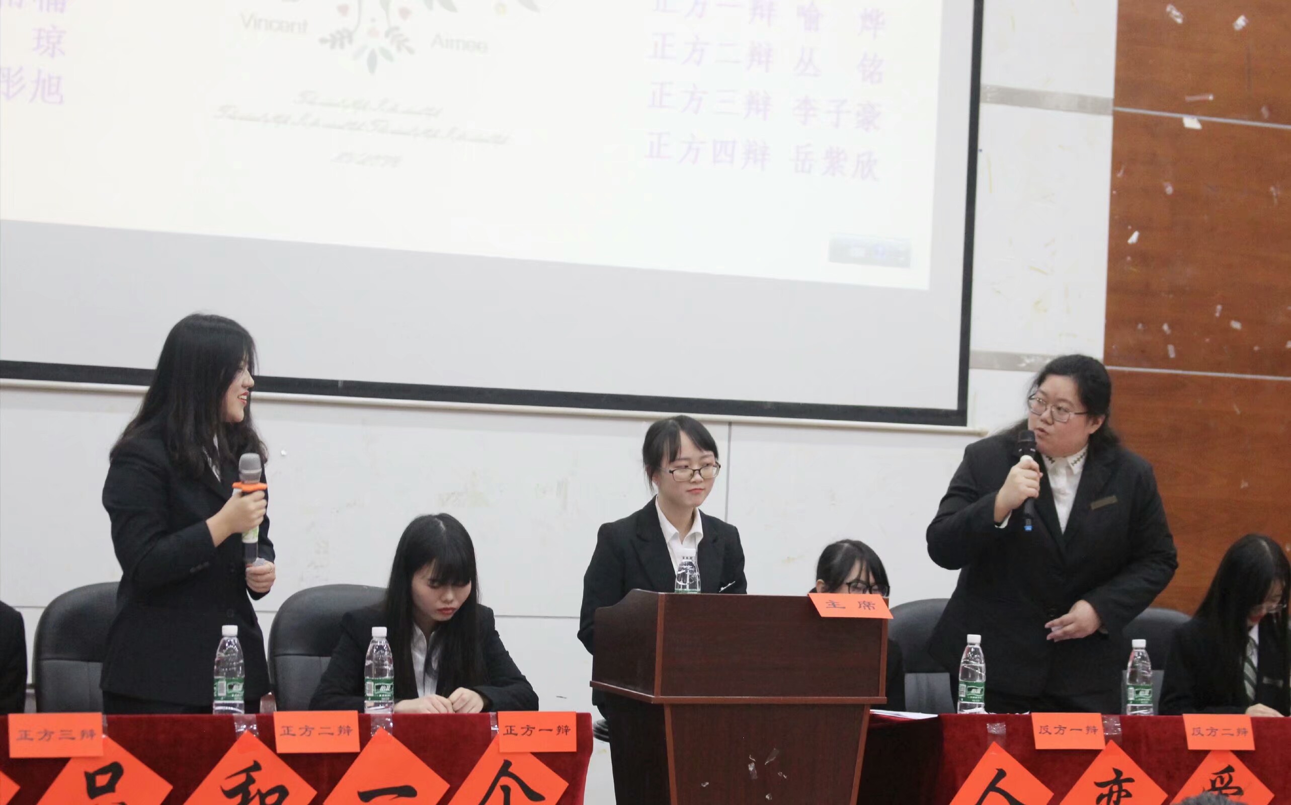 接着进入最为激动人心的新生辩论赛决赛,本次新生辩论赛决赛以“新闻价值更体现在挖掘真实或倡导价值”为题,正方中文一班认为“新闻价值更体现在挖掘真实”,而反方新传一班则认为“新闻价值更体现在倡导价值”。决赛开始,首先由主席对比赛规则进行介绍,然后轮到双方辩手出场。正方中文一班的辩手分别是一辩武喜洋、二辩杨萌、三辩彭莹、四辩张馨艺,反方新传一班的辩手分别是一辩李淑萍、二辩李紫嫣、三辩许露沙沙、四辩谢姣姣。