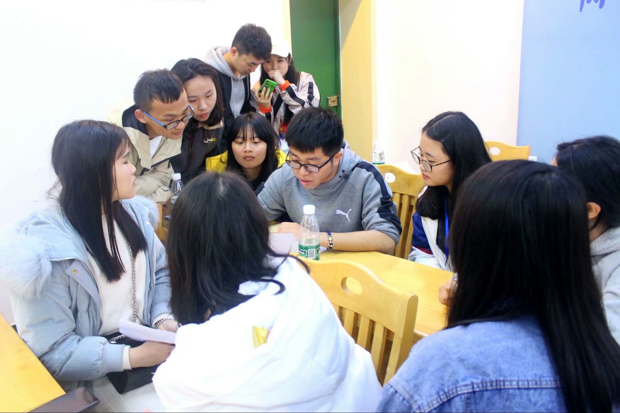 学生在三教318会议室展开工作经验交流会,共同探讨怎样合理地展开社团活动方面的工作以及分享在日常工作所获得的经验。参与本次活动的还有足球赛事直播