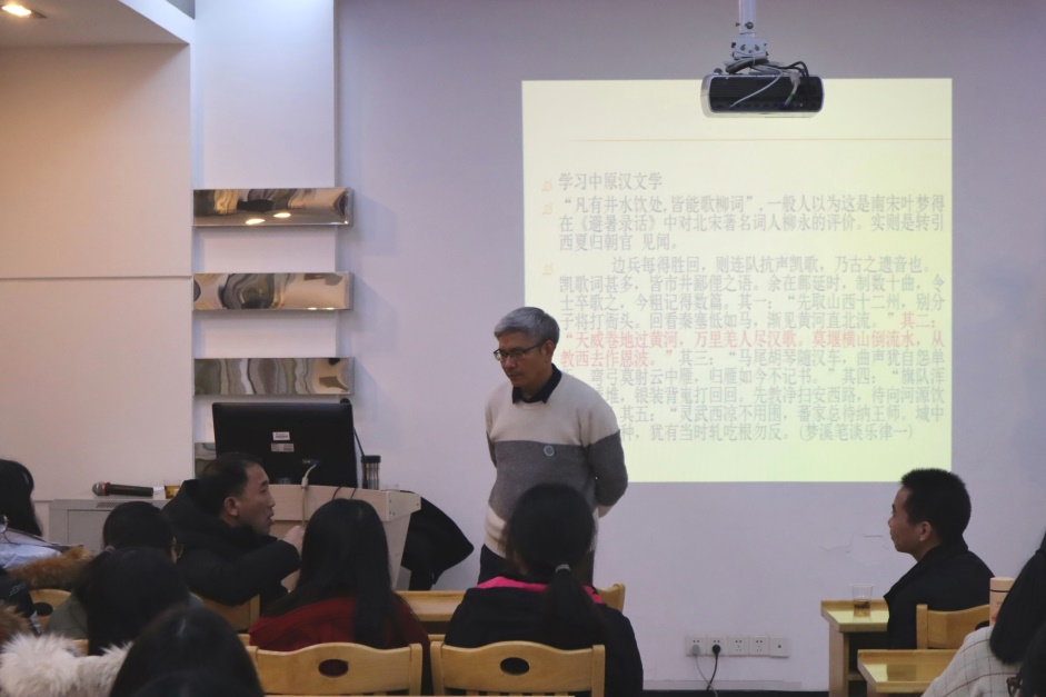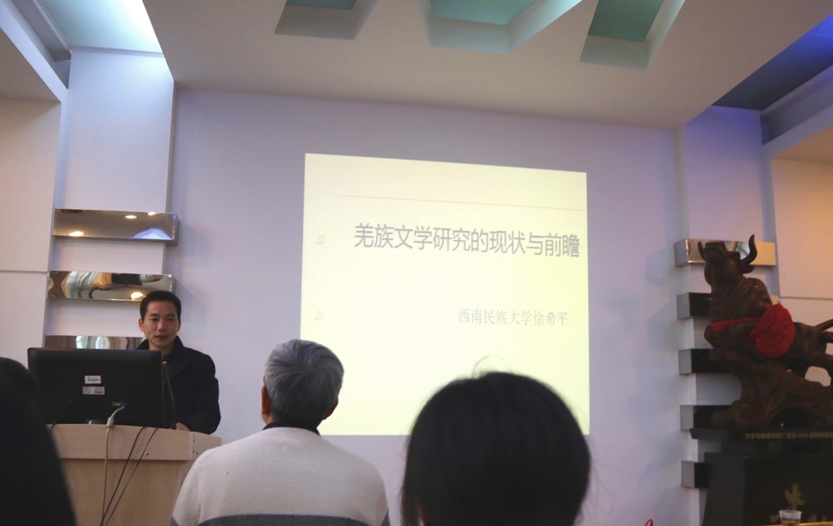 此次讲座中,徐教授从羌族文学的概况、研究现状、前瞻三个部分向同学们展示。