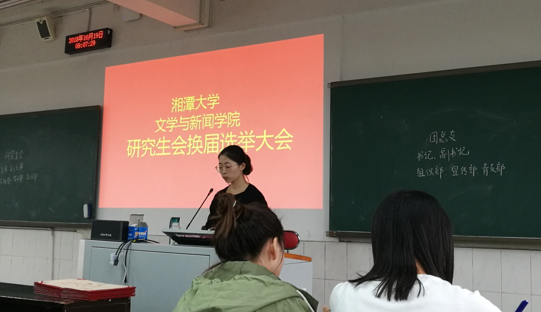最后,第十八届研会主席蔡蓓蕾同学和团总支书记张瑜同学上台发言,对自己之后的工作设想作简单陈述,并表示“在其位、谋其政、担其责”,一定尽心尽力,不负领导老师的期望。