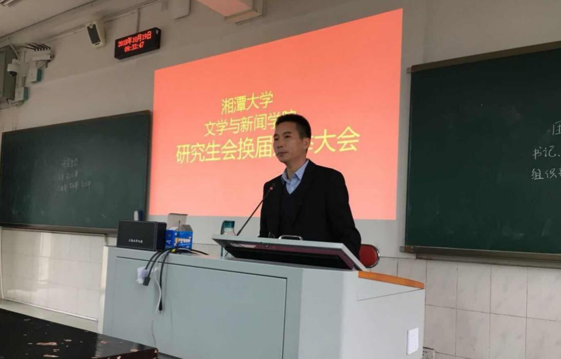 院研工办思政干事林瑜老师宣布了新一届研会成员名单,并颁发了聘请证书。接着,院党委书记赵猛老师上台发表讲话。赵书记鼓励同学们认真学习贯彻习近平总书记对湘大六十周年校庆的批示,一定要不忘初心、牢记使命,努力学习,潜心科研,不负习近平总书记的殷切期望。赵书记也充分肯定了上一届研会的工作,要求新一届研会继续发扬团结协作的精神,并提出了对研会成员的四点期望:研究生会成员要做扎实学习的示范者;做优良学风的培育者;做潜心学术的引领者;做全体同学的服务者。赵书记真挚中肯的希冀,赢得了同学们的热烈掌声。