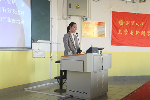 授课之前,由院团委第一副书记李倩进行发言。她认为大学是个适合逐梦的阶段,在逐梦之路上我们应该做到自律、自信、坚持。