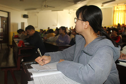 第二,关于怎么做大学生。管胜昔老师为我们展示了社会对大学生的成才要求依次是:“人品、智慧、团队精神、激情”。在人品方面,她强调大学生要在马克思主义哲学的指导下树立正确价值观。在智慧方面,她希望我们保持活力与追求有限度的自由,不要死读书,要自我调控好情绪。随后管胜昔老师引用习近平总书记发言中的“培养有大德、大爱、大情怀的青年”这句话,对我们在大学四年中读书、做事、与人相处、做人都提出了高要求、高期待。管胜昔老师还指出,一个合格的大学生,应该具备并且不断提高自己的抗压抗挫能力。