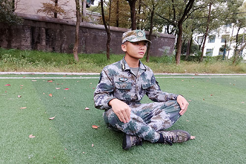 当问及肖教官为何要参加学生军训教官模拟营时,他说:“教官对我的影响是排在首位的,我也想通过这个组织来认识更多的朋友,锻炼自己的能力。”一个对自己,对未来充满信心与希望的人,总是会去尝试着完善自己,让自己懂得更多。但只要有选择就会有困难与徘徊,学生军训教官模拟营总是充满了挑战,只有意志坚定的人才能成功。肖教官是这样告诉我们他是如何坚持的:“真正用心去投入这件事,去寻找做这件事的意义,学会发现这件事带给你的满足感。”正是因为这样才让我们看到了一个侠骨柔情的肖教官。