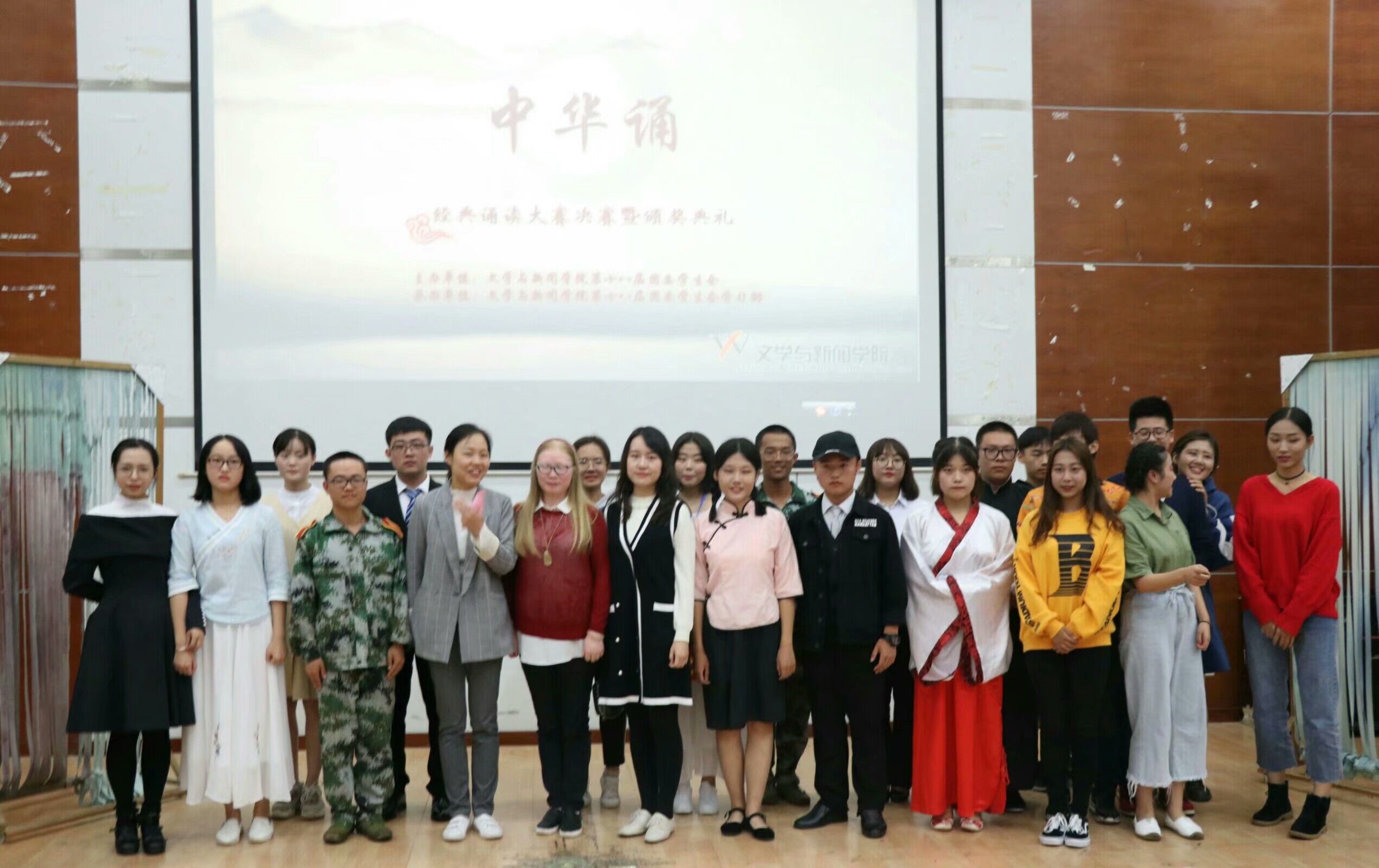 沈云霞老师、原主席团副主席及校中华颂一等奖指导韩宸旭学长、原文娱部部长刘美辰学姐、原主持队队长项巧佳学姐、湘潭大学著名主持人王子昂。本次活动由金宸亦和毛俊桐主持。