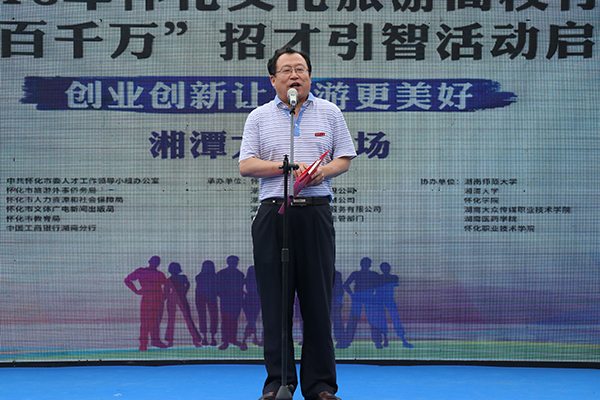 吕家兴在讲话中重点介绍了怀化地区的人文和生态资源、地域文化特色、旅游发展规划、旅游创新创业人才的需求及引进人才优惠政策等方面的情况。素有黔滇门户、全楚咽喉之称的怀化,历史悠久,山灵水秀,古城古镇古村落保存完好,少数民族众多且各具民族文化特色。吕家兴表示,在新的发展时期,怀化将充分发掘自身人文资源、生态资源、红色资源优势,广泛吸引和汇聚高层次优秀人才,共同打造独具特色的全域旅游,实现“创新创业,让旅游更美好”。