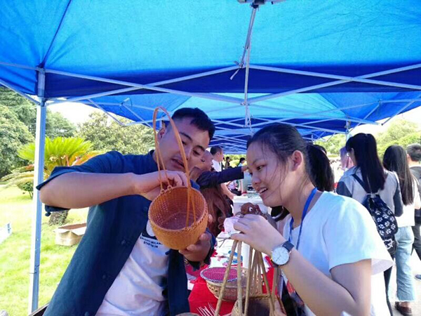 活动现场,芷江受降纪念馆、洪江古商城、黔阳古城等景区代表,为师生详细解说了各景区的特色,新晃剪纸、夜郎竹编、雕花蜜饯、怀化学院非物质文化遗产系列设计等文创产品,让师生们近距离地领略了怀化独特的风土人情和怀化人民精湛的手工工艺。在现场观展的刘同学表示:“活动让我见识到了怀化的多民族风情和非物质文化遗产。加强学校与地方交流,为我们搭建更多的实习就业平台,确实是很让我们受益。”