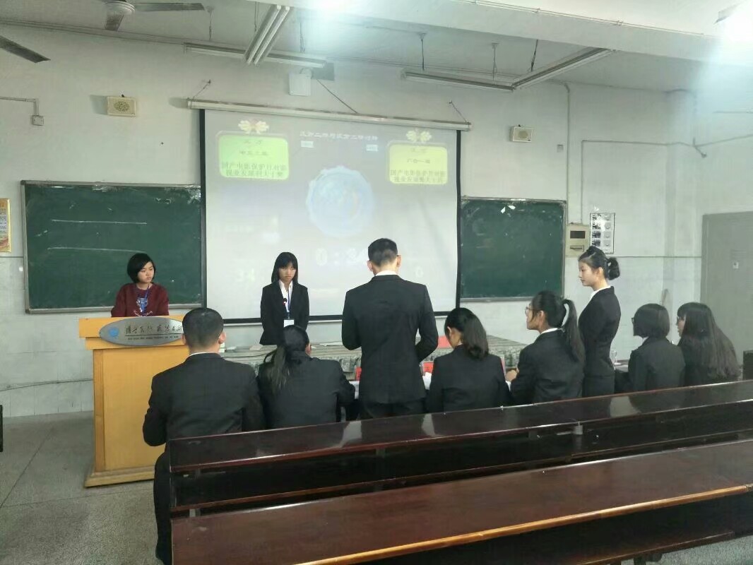 刘亚男学姐。本次辩论赛的评委是辩论队优秀辩手公共管理学院张冉冉学姐,土木工程与力学学院杨沙学姐,信息工程学院陈昕蔚学姐。正方中文二班和反方广告一班就辩题“国产电影保护月对影视业发展的利弊”展开激烈的辩论。