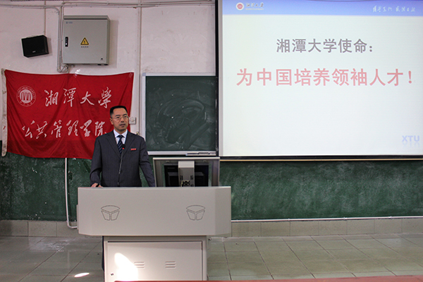 开学典礼结束,2017年第2期入党积极分子培训班的第一次授课正式开始。本次授课的主讲人是湘潭大学公共管理学院肖湘雄教授。肖教授为此次授课选取的主题是:新时代青年的价值追求与责任担当。在授课开始前,肖教授表示,能来参加这次课堂授课,既是他的荣幸,同时也深感压力。肖教授说,希望通过此次一个半小时的课,和大家多交流沟通,将一个个疑问号变成一个个惊叹号。台下掌声热烈。