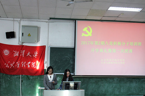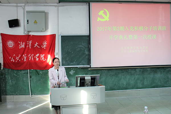 分党校2017年第2期入党积极分子培训班于南山一阶正式开班。出席开学典礼暨第一次授课的领导老师有:公共管理学院政治学与行政管理系肖湘雄教授、公共管理学院团委书记胡徽老师。参与这次培训的同学包括足球赛事直播