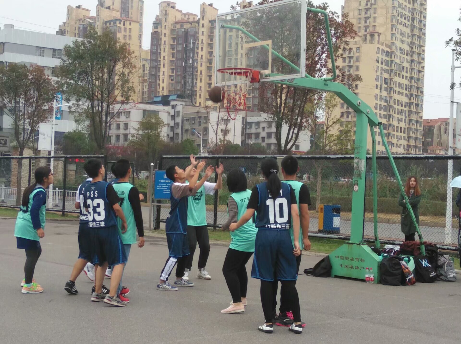 短暂休息两分钟后,第二节比赛立刻开始。比赛开始不久,双方互相追逐,赛况紧张,17新传三班彭珊珊与17广告二班胡建勇各投得一记两分球,双方拉拉队呼声此起彼伏。此刻,凉风阵阵,已入秋的湘大渐渐地冷了起来。但在东门的球场上,比赛双方努力刻服寒风与冷雨,激烈地争夺比分。中午12:51,17新传三班球员彭珊珊连进两球,为本队夺得8分,而随后,17广告二班在比赛中再次拿下2分。截止第二节比赛结束,17广告二班以20:21的比分领先17新传三班。