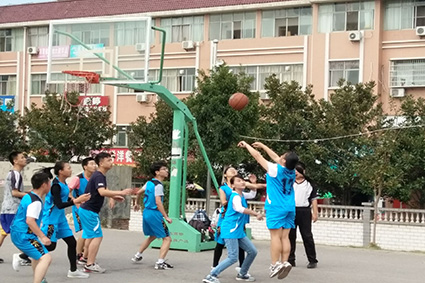 比赛开始前,篮球场上就有了前来观看比赛的观众,队员们也进行着赛前的热身,队员们相互加油鼓气。紧接着,篮球赛的首轮对决开战了。现场气氛急剧攀升,双方气势逼人,互不相让。