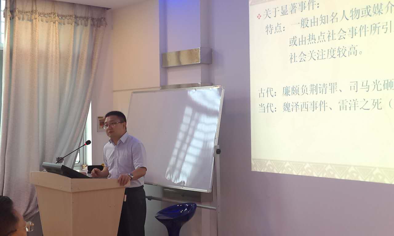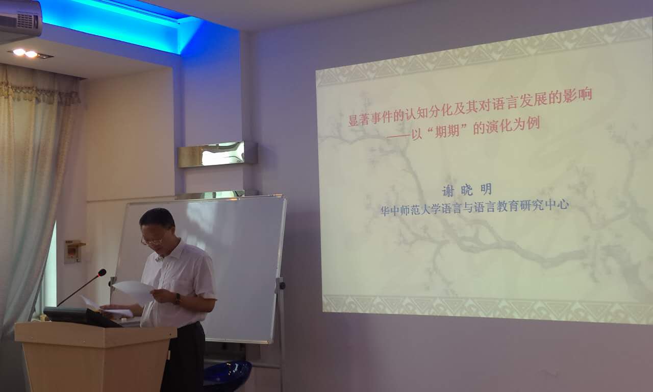 5月19日上午,华中师范大学语言所教授、博士生导师谢晓明先生应邀来到我院,在文科楼318多媒体教室为我院师生作了“显著事件的认知分化及其对语言发展的影响——以‘期期’的演化为例”的主题讲座。讲座由李军华教授主持。
