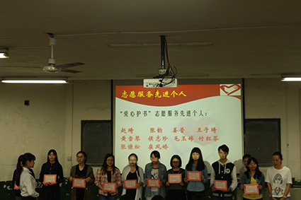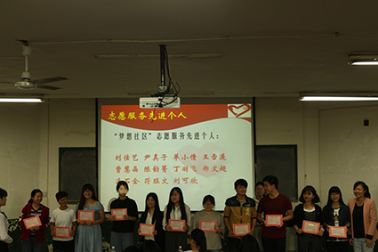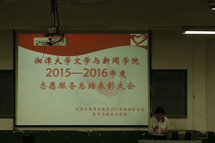 随后,青志部部长徐季尧对本学年志愿服务活动进行总结。“新一届青年志愿者实践部自2015年5月组建以来,共招收200多名志愿者并组织参加了四项常规志愿活动及三项特色活动。共开展梦想社区活动6次;寝室绿色行动12次,累计善款772.5元;爱心护书活动7次;爱心血库累计值班时间超过600小时。仅12月24日,北苑一辆献血车采血人数达140余人,献血总量超过20000毫升,荣获湘潭市无偿献血先进优秀志愿社团……”毫无疑问,志愿服务是伟大的,这一串串数字,写下的是志愿者的付出,写下的是志愿者的无私奉献。