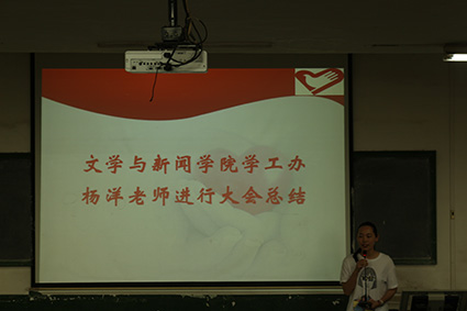最后,学工办杨洋老师对志愿者的志愿服务表示感谢,“你们的认真扎实,让老师感到骄傲。作为大学生,我们还要承担知识传播的责任,为身边人做力所能及的事情。”
