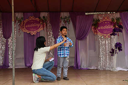 在节目表演过程中,进行过两次游戏。第一次是“听歌识曲”,大家在听到熟悉的歌曲后都踊跃地回答;第二次是“我画你猜”,台上的志愿者们用身体展示抽到的数字,台下的居民们也都玩得很开心,最后,还有一个小朋友上来为大家讲了他的谜语和笑话,引来了大家的阵阵欢笑。节目表演完毕后,青志部的全体小伙伴们又为大家演唱了一首《爱,因为在心中》作为收场节目。