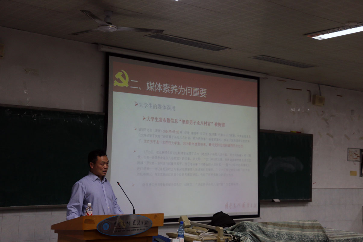 接着,授课进入了下一个命题“媒介素养为何重要”。他说,当今社会,无论什么专业的学生都应该学习关于媒介的知识,现代社会正在经历着巨大的变化,我们正迎来的是一个数字化、网络化的全新时代。当下,一个缺乏基本媒介素养的人必定会举步维艰。就此,他特别强调“党员尤其应具备媒介素养,缺乏这一素养的党员容易形成错误认知,损害党的形象,伤害群众的感情,贻误党的工作,影响个人的发展。他说,近年来党员队伍中之所以会出现层出不穷的“雷语”、“雷事”,就是因为一部分党员缺乏必要的媒介知识,而新媒体诸如“微博”“微信”等具有范围广、速度快、效率高的特点,这让那些“雷语”“雷事”能在大众之间迅速发酵。因而,媒介是把双刃剑,用得好则效益显著,用不好则祸患无穷。在此过程中,王洁群常常引用现实的例子,真实生动,同学们都听得非常认真,并及时记下其中的要点。