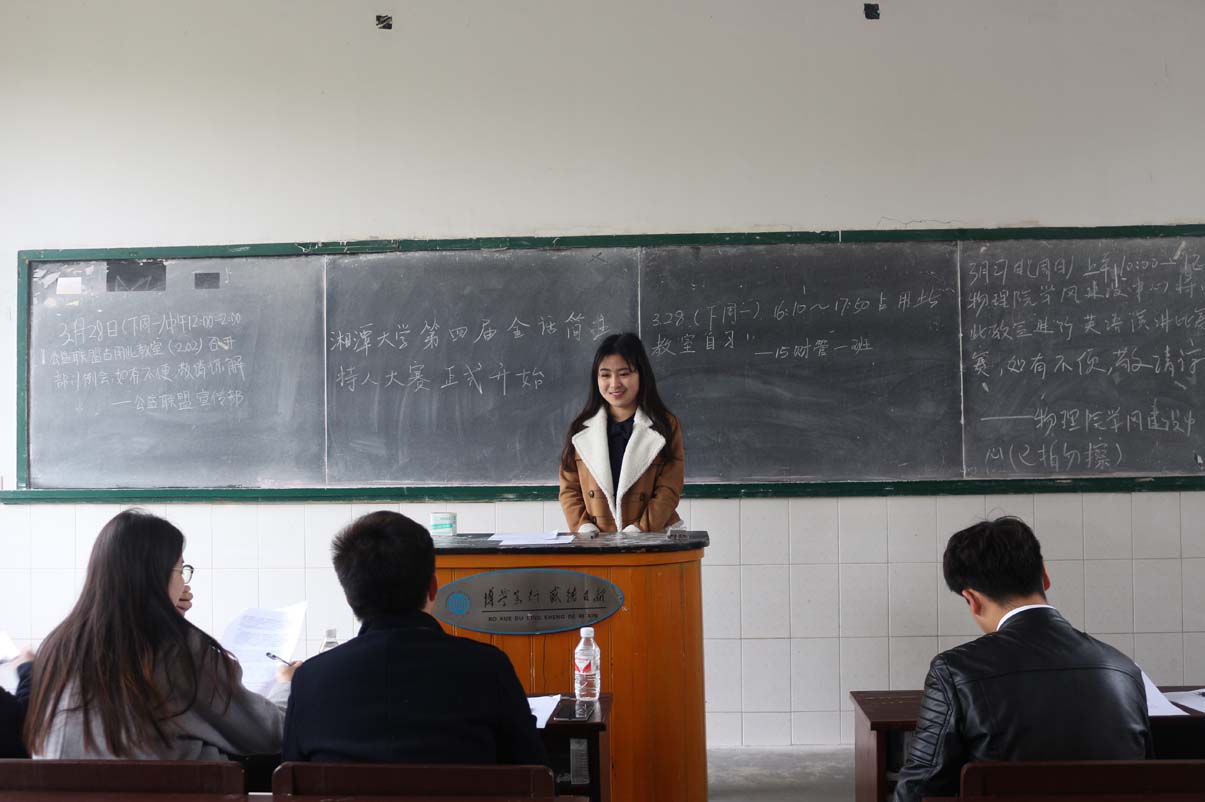 3月26日上午八点半,湘潭大学第四届金话筒主持人大赛海选在第三教学楼顺利举行。本次海选设置了两个候场区及四个面试区,由各个院系的学生会主席担任海选评委。