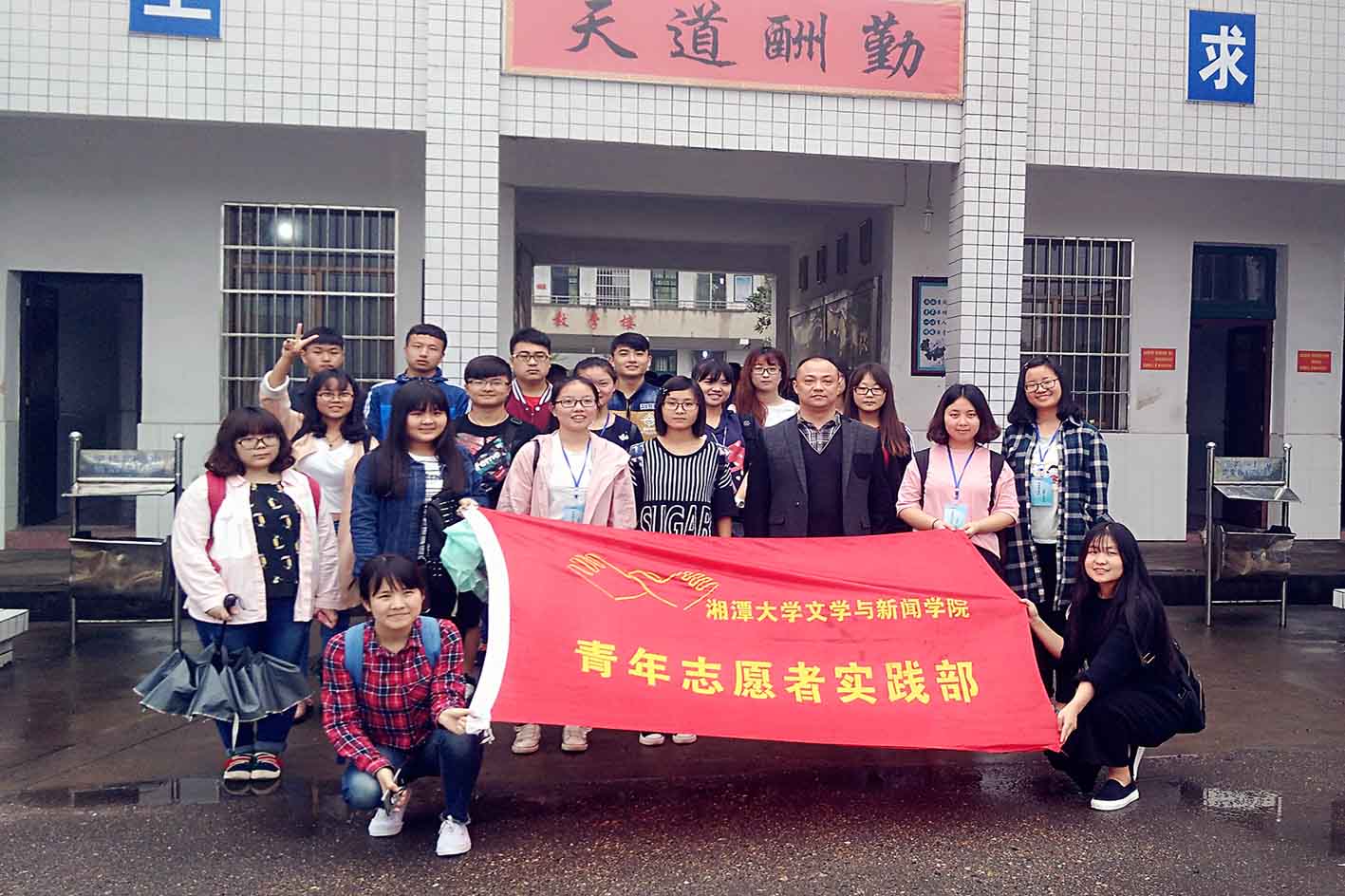 团委学生会青年志愿者实践部在河口镇进行了“援建河口镇”活动。在此次活动中志愿者对河口镇中学九年级学生和河口镇敬老院进行慰问。活动期间遭遇大雨,但志愿热情毫无减退。