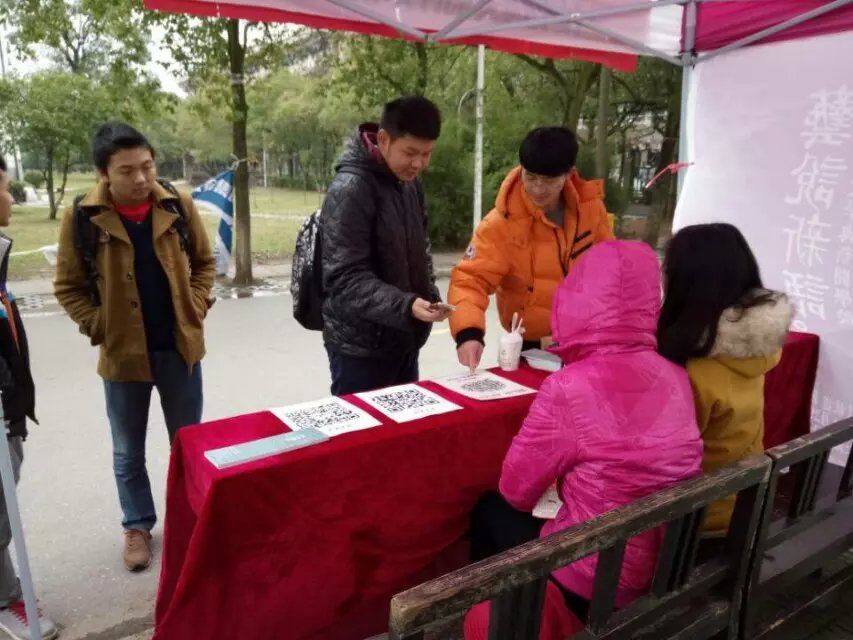 团委官方微信和桃妆小铺的二维码并加以关注,才可以“抱得票归”。另外,还可以获取文艺晚会的主题贴纸及桃妆小铺赞助的小礼品。