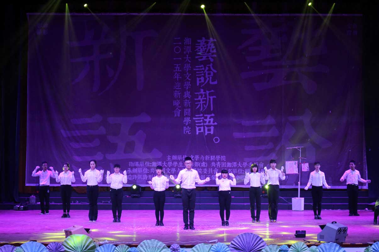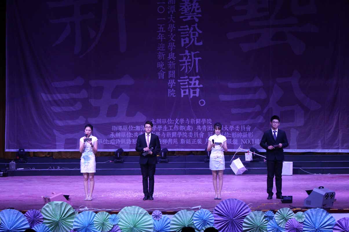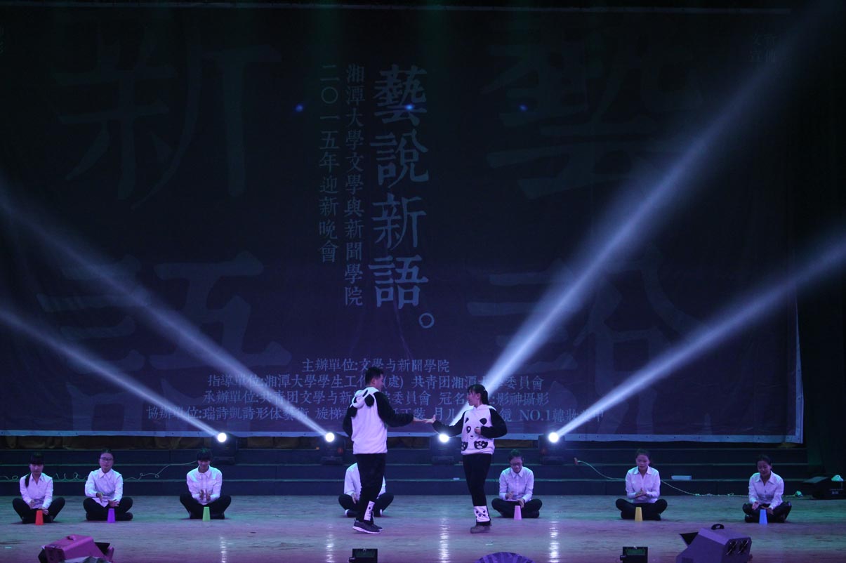 11月29日晚7:00,我院“艺说新语”文艺晚会在湘大俱乐部拉开帷幕。此次晚会到场嘉宾有湘潭大学副校长刘建平教授、湘潭大学学生工作部(处)王建平副处长、足球赛事直播
