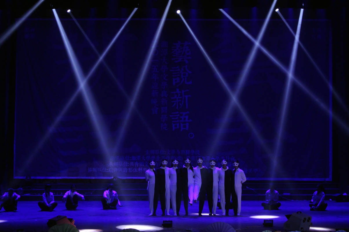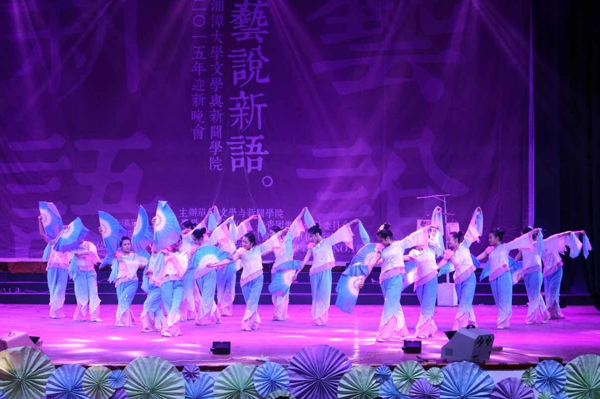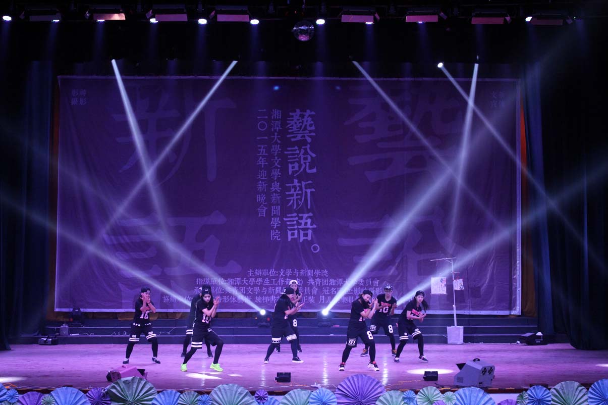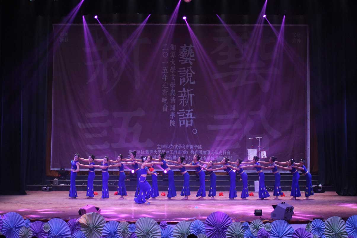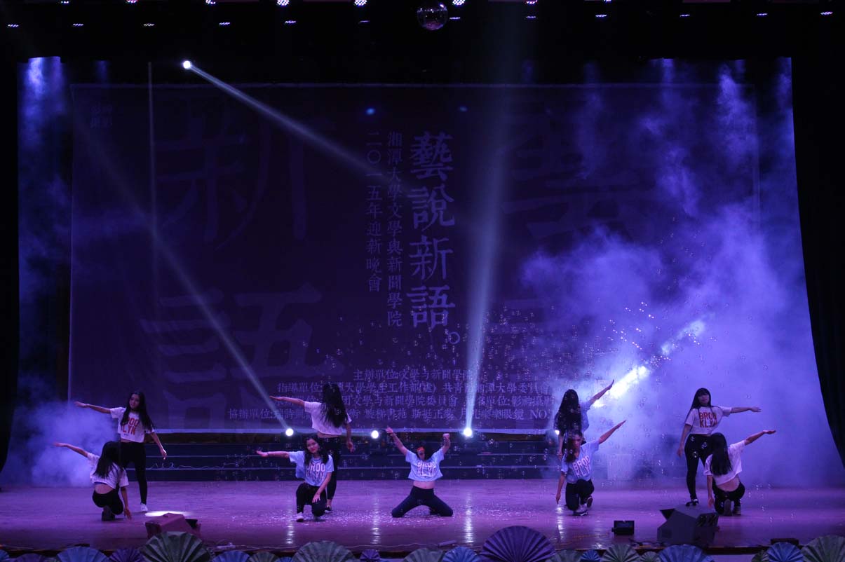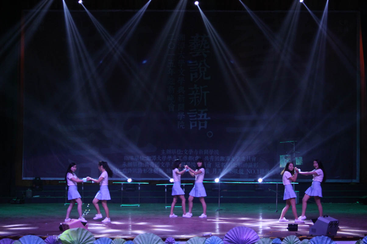 本场晚会舞蹈种类多样,现代、民族相映成趣。14中文2班带来了一曲傣族舞《女儿花》,以迷醉的蓝色灯光开场,独具民族特色的音乐为背景,灵动的少女们身着蓝裙、手持红花,显得格外美艳动人。暖场舞也由舞蹈串烧构成,在校园活力风与性感妖娆范中自如切换,令人耳目一新;14新闻系的舞者又在爵士舞《Can't Stop Dancing》中用她们的奔放热情演绎了永不停息的青春激情;手语社则为我们奉上了一场动人的手语舞《时间往前,爱情向后》,《南山南》、《一次就好》、《时间都去哪了》等歌曲配以优美的手语舞,为我们串起了一条生命的时间锁,诠释出”生命美好,你我当珍惜”的真谛。压轴舞蹈节目是由15广电1班带来的《清明上河图》,折扇合舞,乐音如潺潺流水般涤濯人的心灵,男女对舞,民族与拉丁巧妙融合,国风式舒缓舞姿搭配现代快节奏动感音乐......完美的古现代交汇恰是“艺说新语”的体现,让人印象深刻。