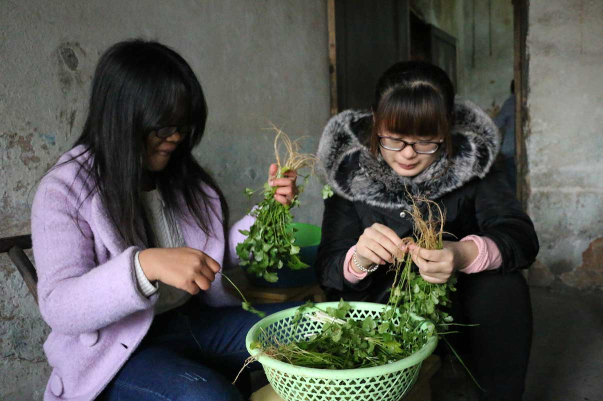 我院青志部部长黄丽娜将志愿者们分为四组,分别前往石奶奶、胡奶奶、孟爷爷以及一位小朋友家,其中两组志愿者分别在石奶奶与孟爷爷家准备了午餐。