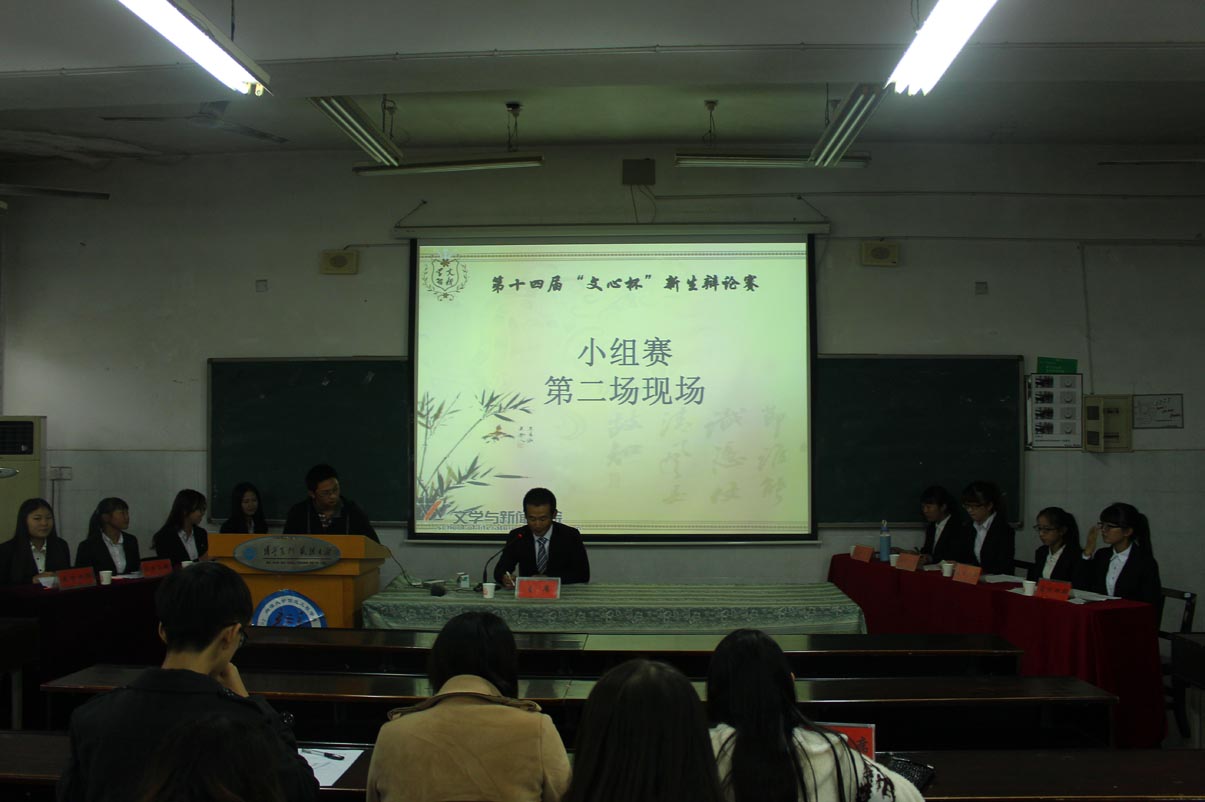 11月7日下午两点半,第十四届“文新杯新生辩论赛”小组赛在经管楼201举行。此次的小组赛由新闻一班对战,犹为精彩。本次辩论赛的主席由韩宸旭担任,评委分别由信工院的任文杰学长、公管院的孙英姿学姐和足球赛事直播