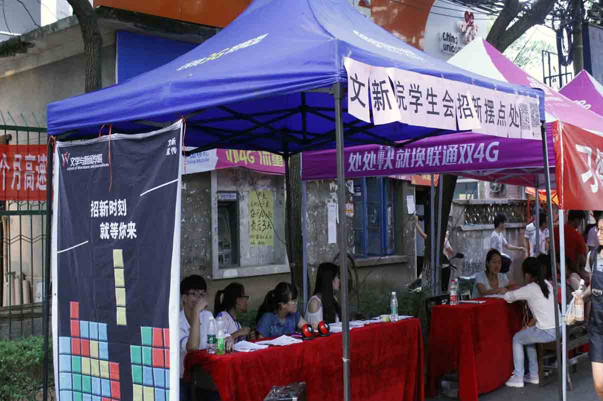 新生寝室集聚地——北苑,按照事先预设的分组安排,下寝对学生会各个部门进行宣传。各部门部长以活泼、积极的话语充分介绍了各自部门的特点与工作的流程,赢得了新生们的一致热烈欢迎。“学长,给你们拿些糖吃啊!”“我们不拿群众的一针一线哦。”幽默的对话之间,我们与新生的关系不知不觉拉近了许多,这给我们的招新工作带来很多方便。许多15级新生听了我们的宣传后,都踊跃地提出一些问题来进一步了解学生会各部门的职能,以便自己可以加入到符合自己能力或者让自己感兴趣的部门内。