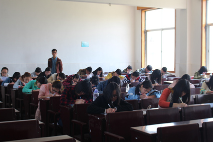 考试开始前,不少考生提前到达坐在座位上进行最后的复习。12:30,考生开始作答,教室里十分安静,只有不间断的写字声。工作人员们尽职尽责进行监督,考生们忙着作答没有人抬头,偶尔可见考生抚着额头思考,不久便又投入到作答中了。最后半小时的时候,答题较快的学员先行交卷离开考场,更多的学员在检查试卷。组织部工作人员员开始整理试卷。13:30,考生们停止检查,有序的将试卷交到工作人员手中离去。本期团课及结业考试宣告结束。