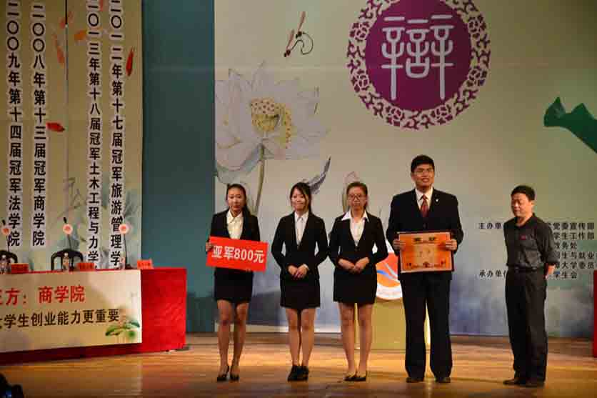 。正方辩题为大学生创业能力更重要,反方辩题为大学生创业精神更重要。本场比赛主席为吕佳学。正方辩手分别为一辩宋金亮,二辩黄宝莉,三辩郑琦,四辩杨帆。反方辩手分别为一辩李贺,二辩薛珊,三辩臧雪文,四辩吴栋鹏。在双方辩手自我介绍完毕并对对方辩友致以友好问候之后,本场比赛正式开始。