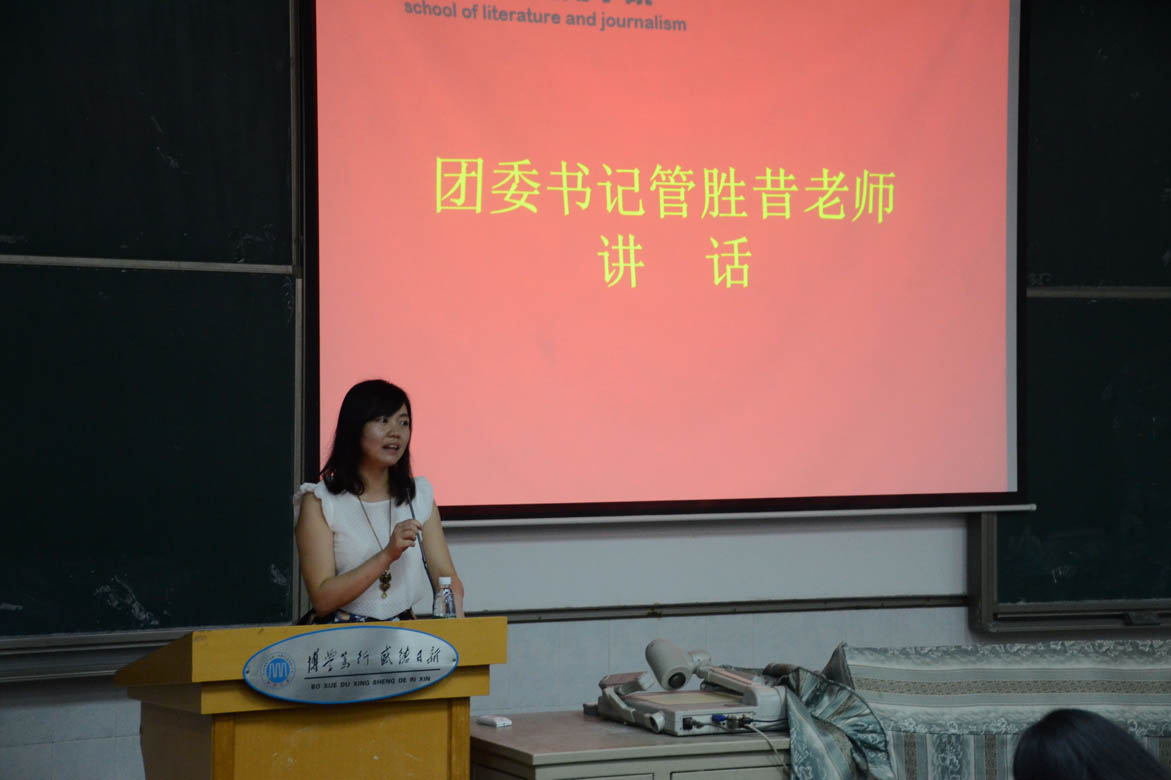 大会第四项,由团委书记管胜昔老师讲话。管老师的讲话分为三点,首先表达了对全体学生会成员一年中付出的辛勤与汗水的肯定与感谢。其次,提到了对接下来的工作的一些意见,指出加强干部干事培训,即基本礼仪,文书策划,办事流程等方面培训的重要性。最后,管老师希望新一届学生会成员可以加强与其他学院或学校同学的学习与交流,注重活动整合与活动创新,将活动办得更好。