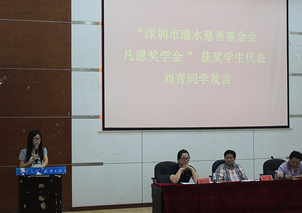 高源先生表示,刘青同学的讲话令他感动,也说明了贫困学生求学的不易,由深圳市瑜水慈善基金来管理凡恩奖学金,就是为了使之能够更加长久的坚持下去,让更多的学生获得帮助。